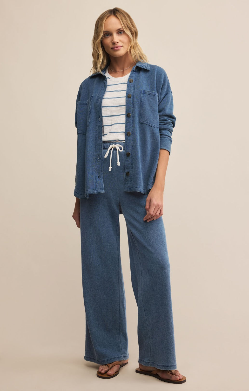 - Knit Denim French Terry: 85% Cotton, 15% Polyester