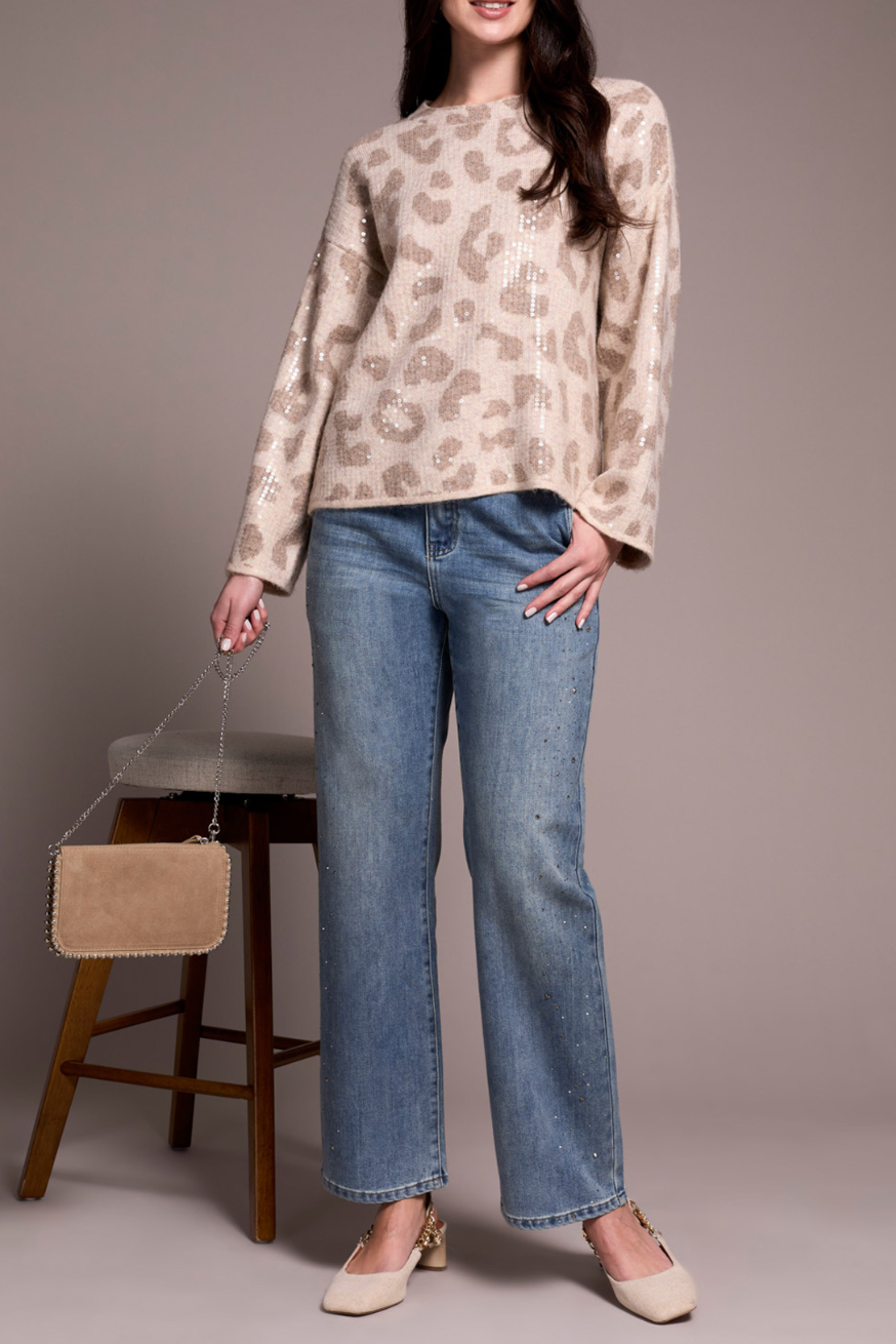 L/S CREW NK SWEATER W/SEQUINS-Sandstone