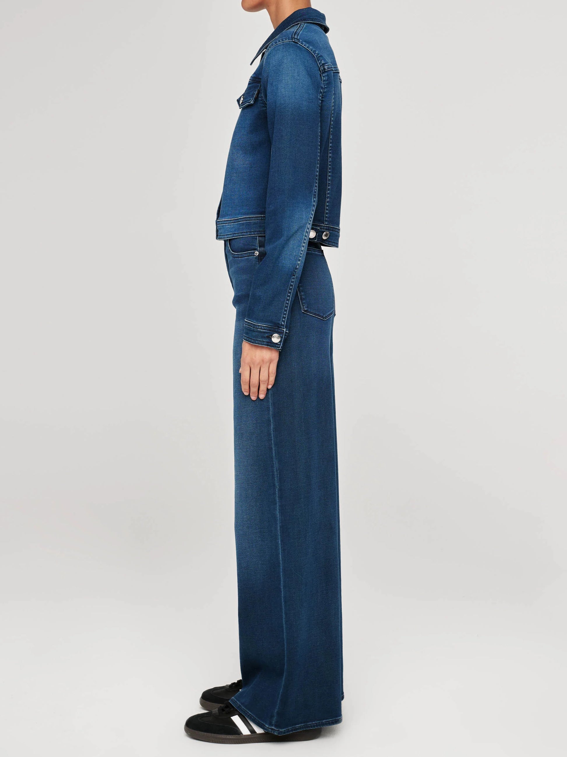 Hepburn is a vintage high-rise that is fitted through the waist and seat, tapering outward from the thigh for a wide leg with a 32' inseam.