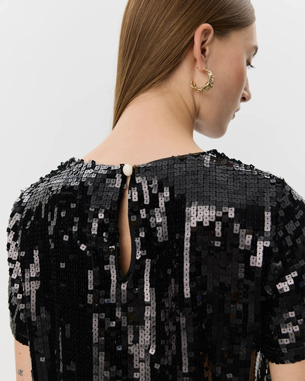 • Black sequin t-shirt with short sleeves