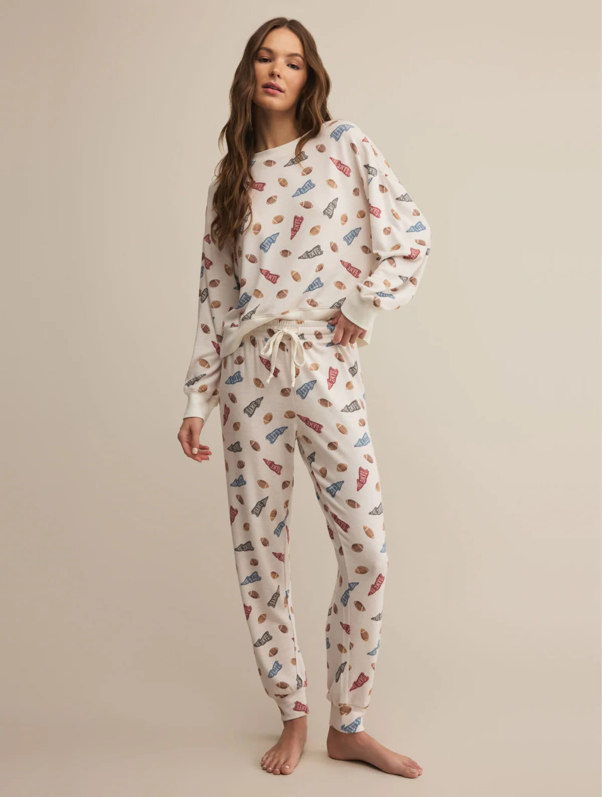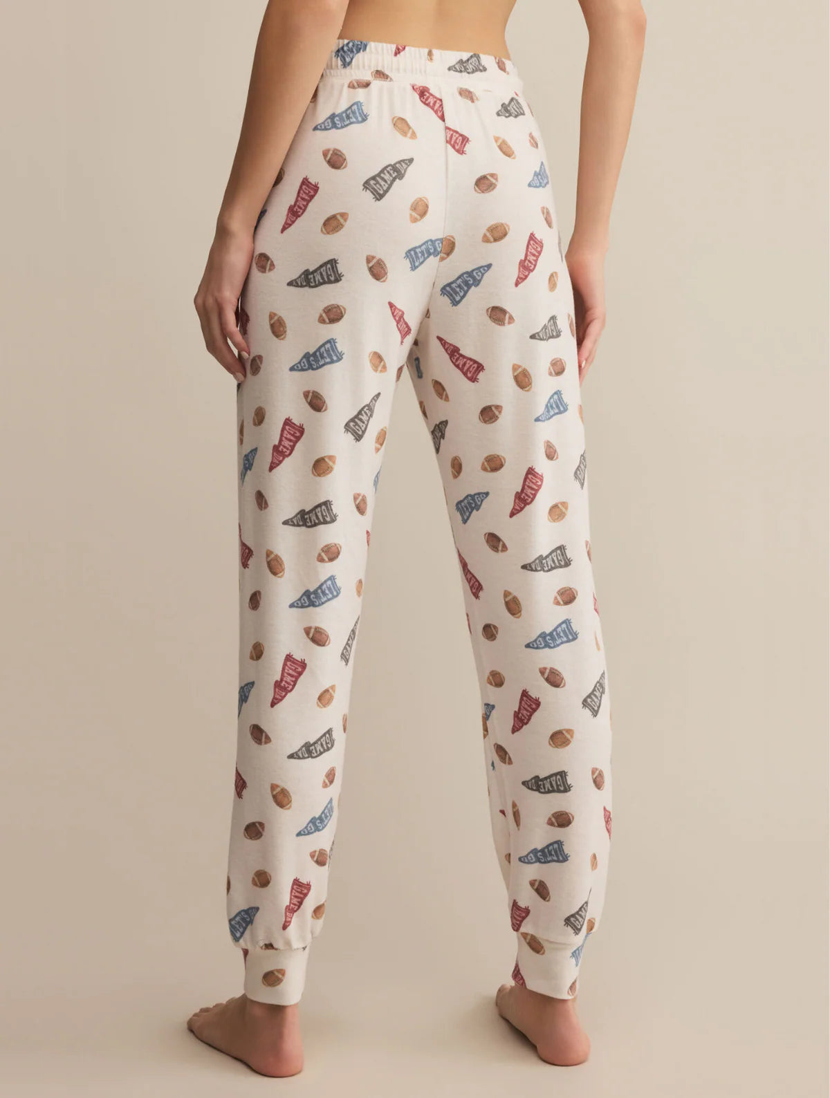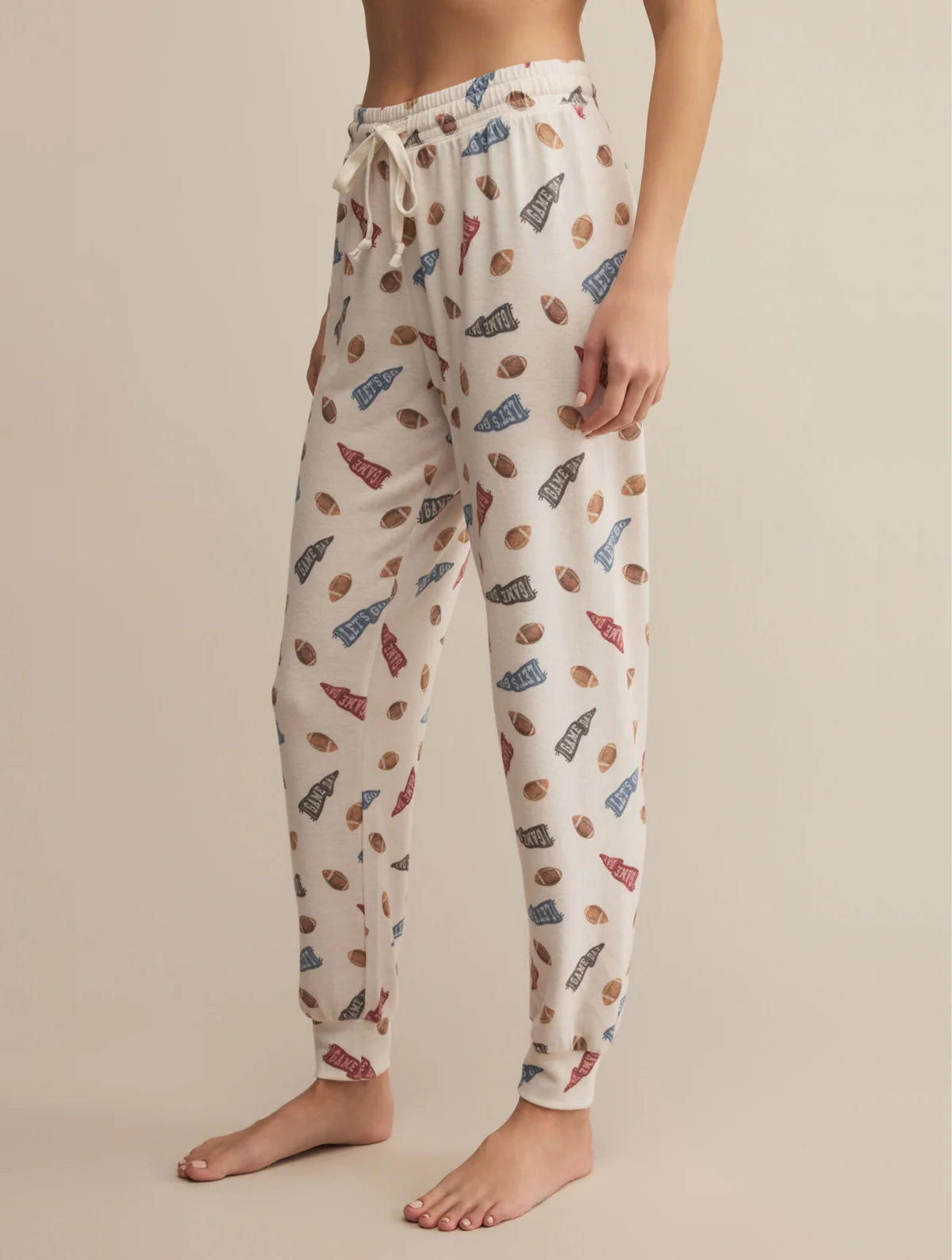 Playful meets practical in this sporty-inspired, "let's go!" print made from our signature silky jersey fabric. With a high-rise design, adjustable drawcord waistband, and a relaxed fit that hits at the ankle, it’s lounge mode: activated.
