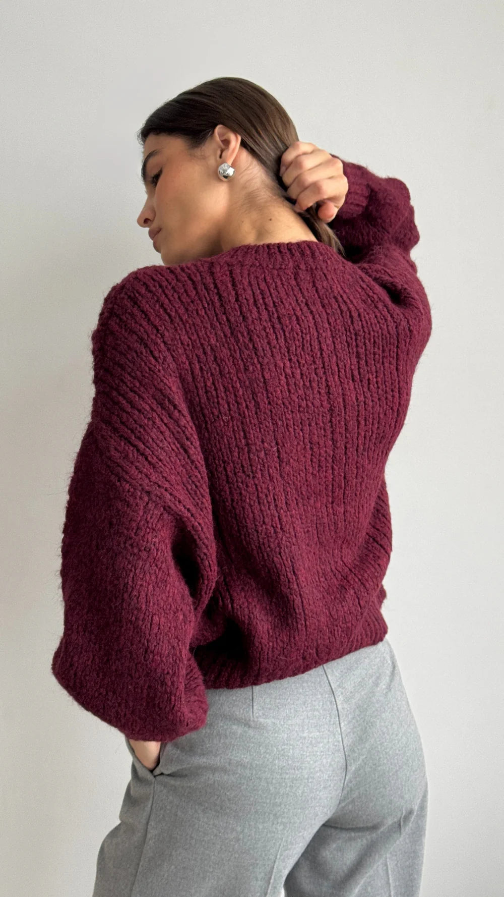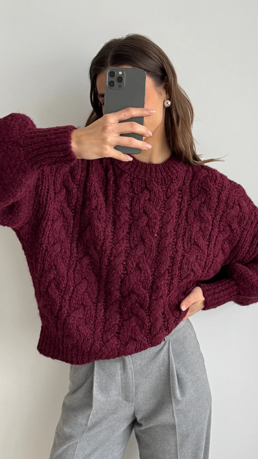 Cable knit Sweater with fashion forward fit, for an updated take on a classic look. Bell shaped sleeves in the softest knit. Perfect teamed with soft tailoring or denim for an effortlessly chic look