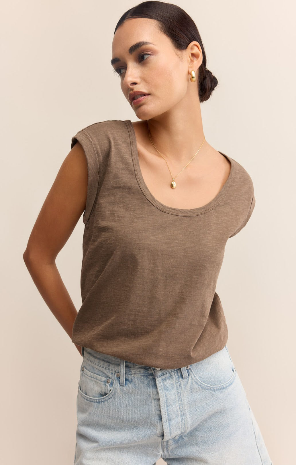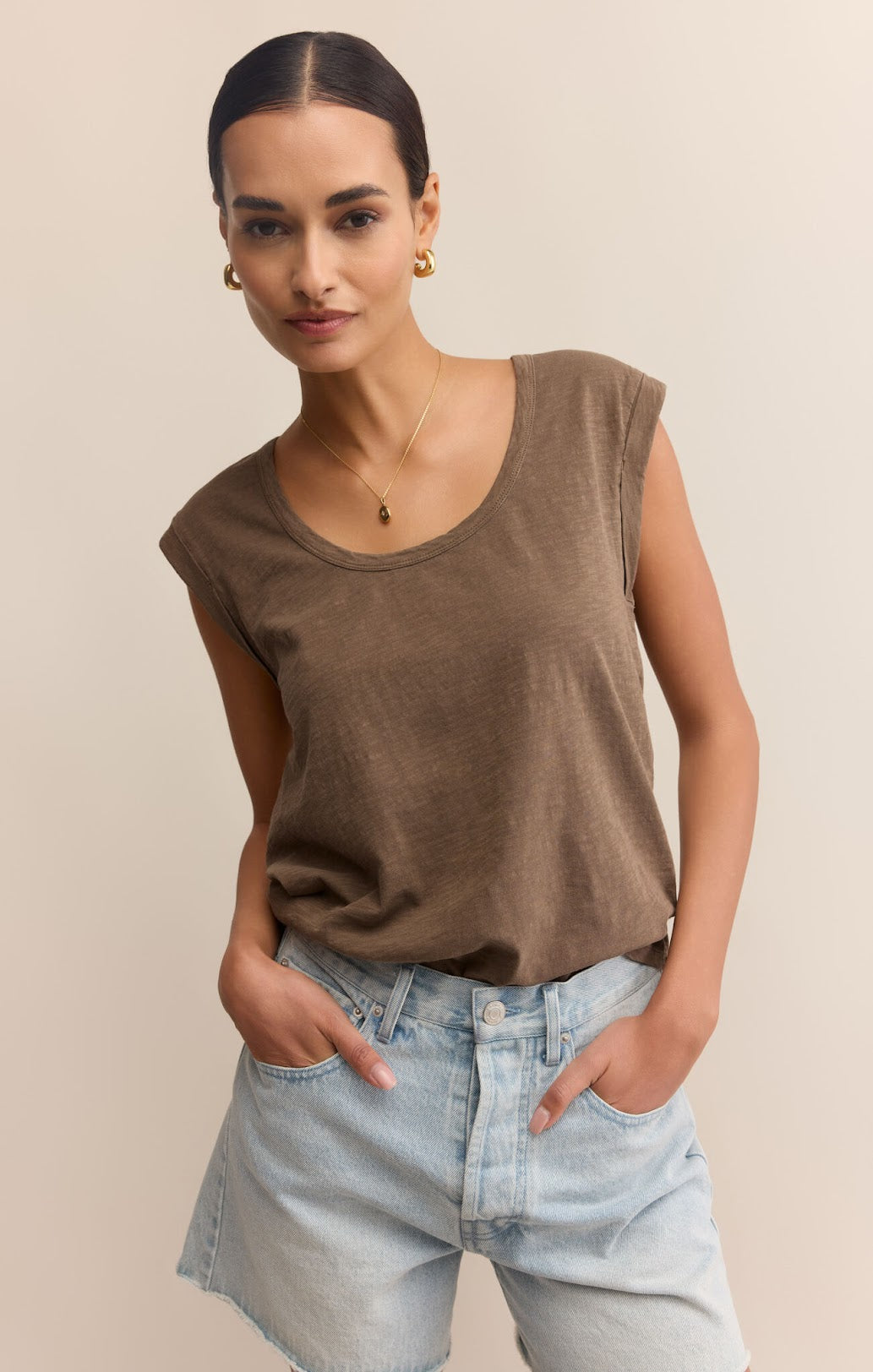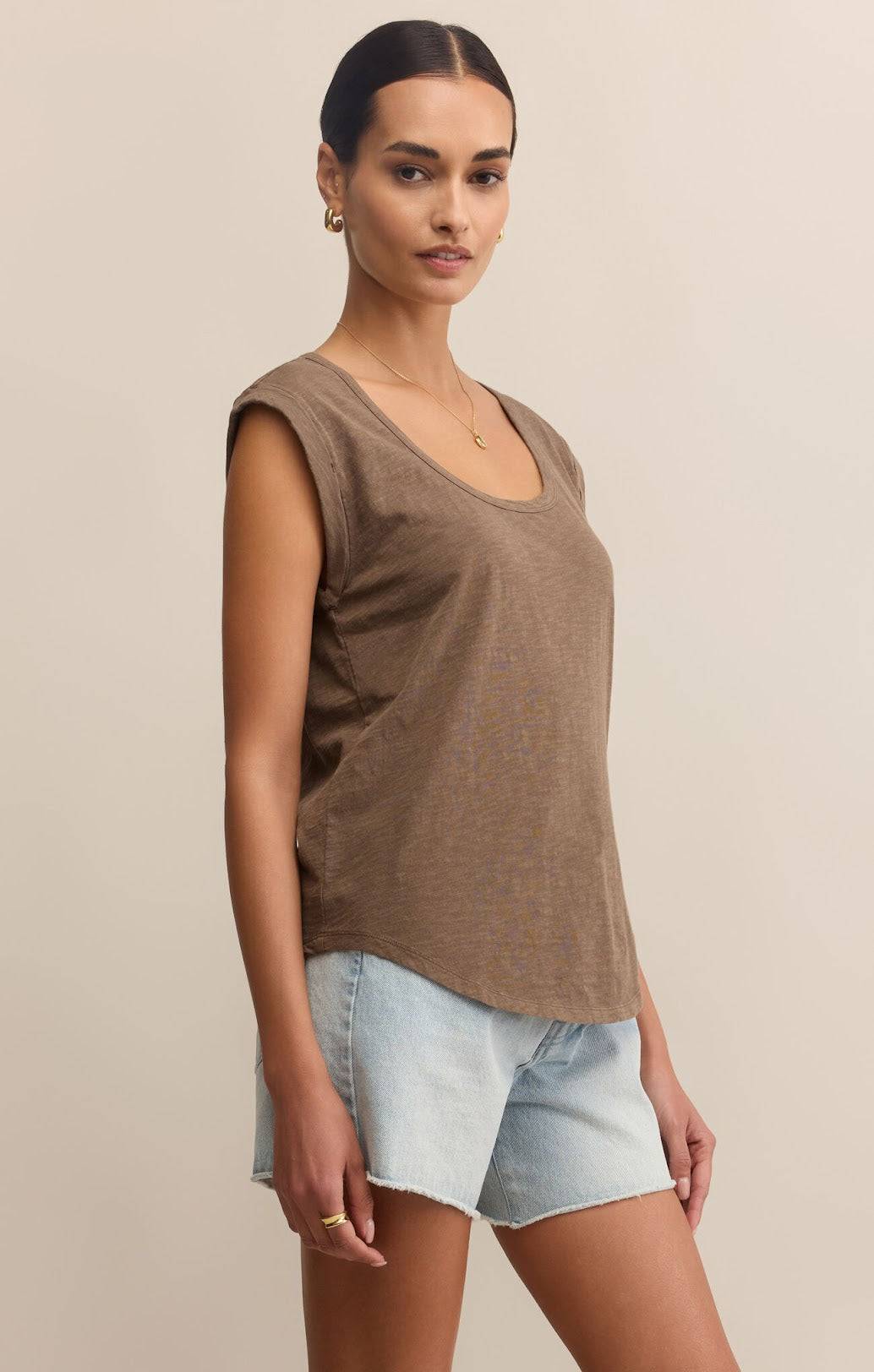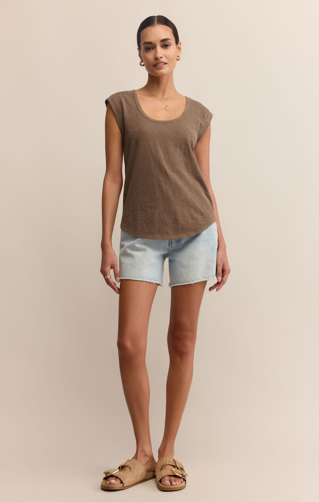 Cotton Slub Tee, Scoop Hemline, Round Neck