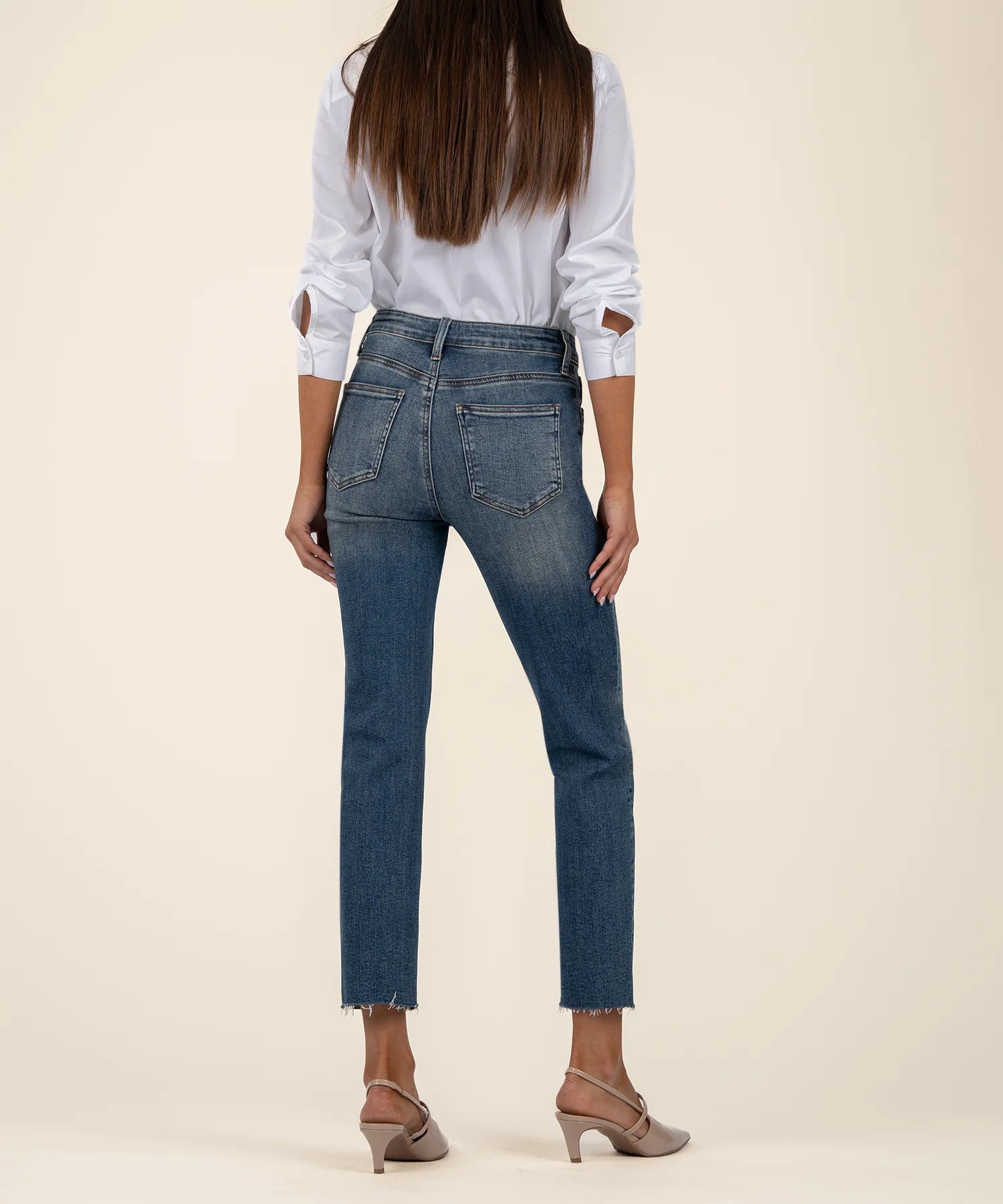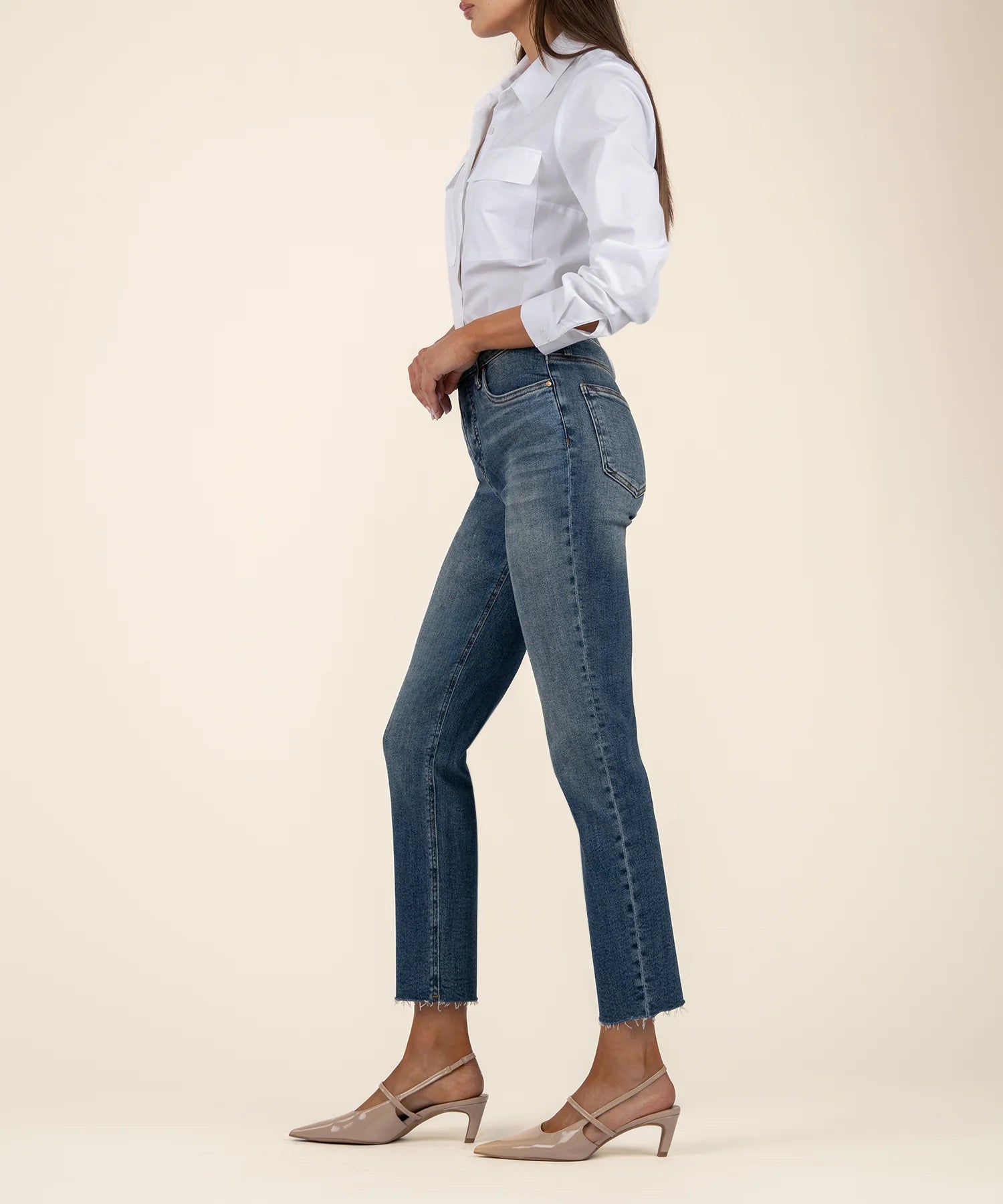 - These high-rise jeans feature a raw hem and our signature Fab Ab pockets for a flattering fit. The dark wash provides a versatile, everyday look that’s both comfortable and easy to dress up or down for any occasion.