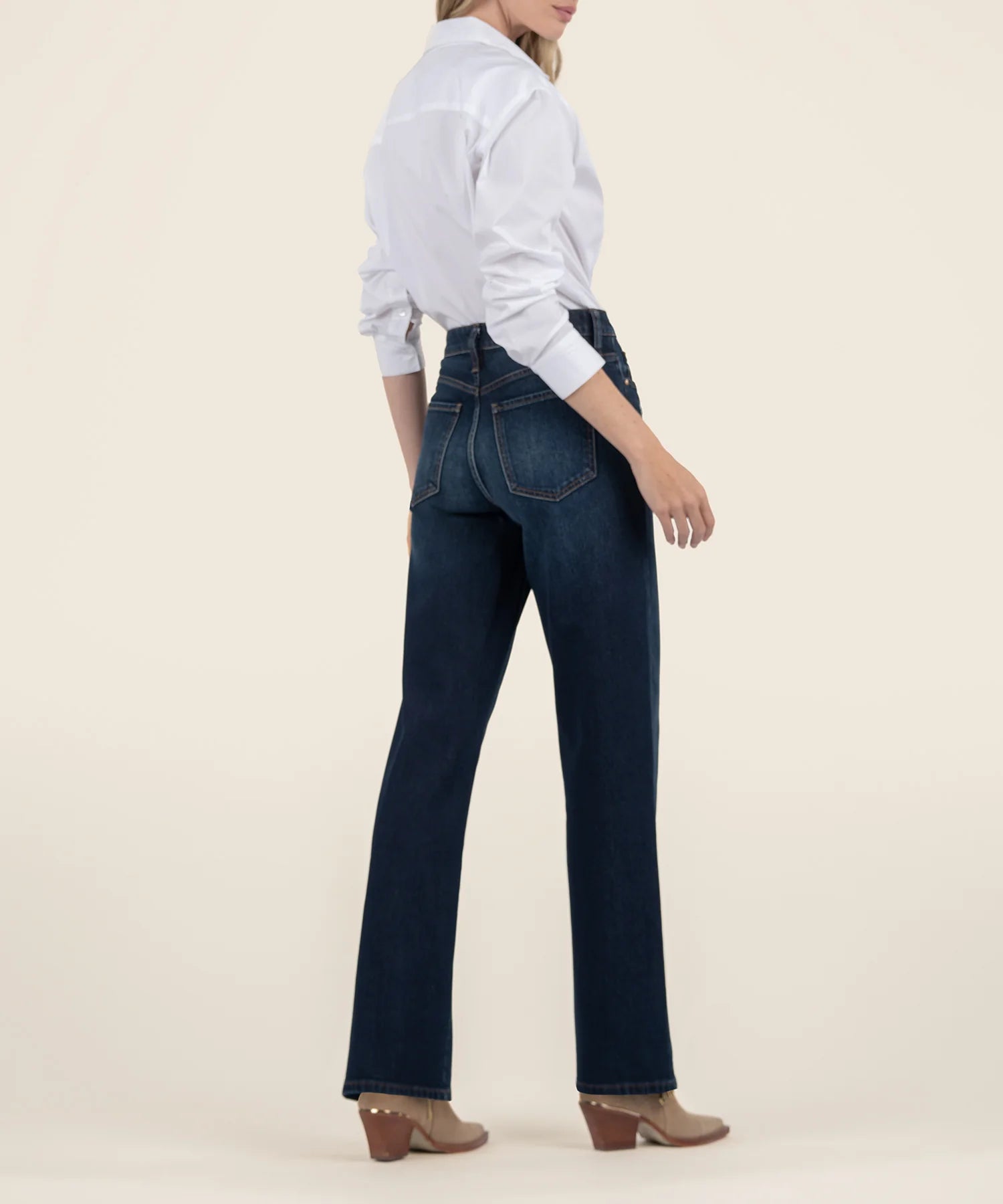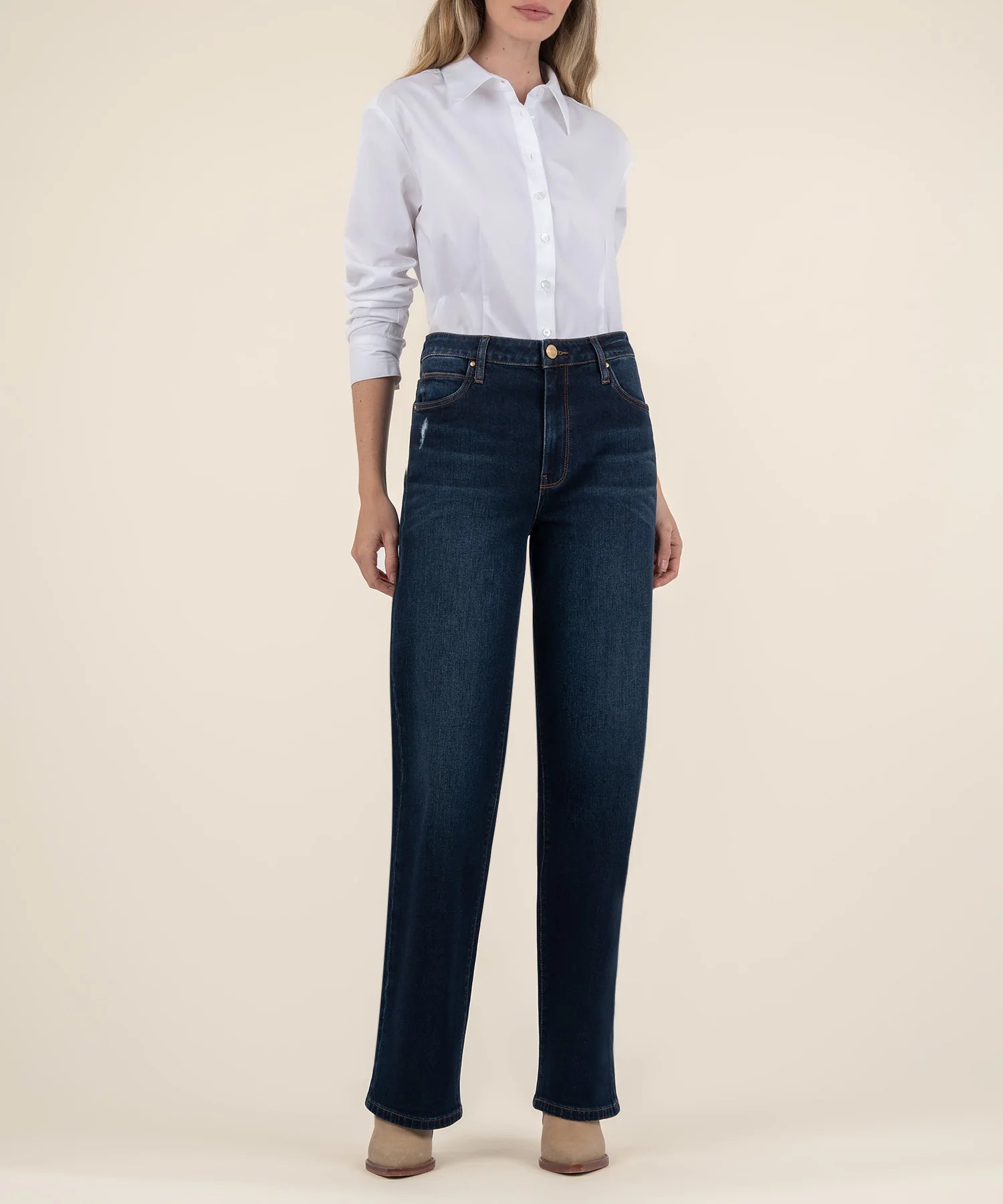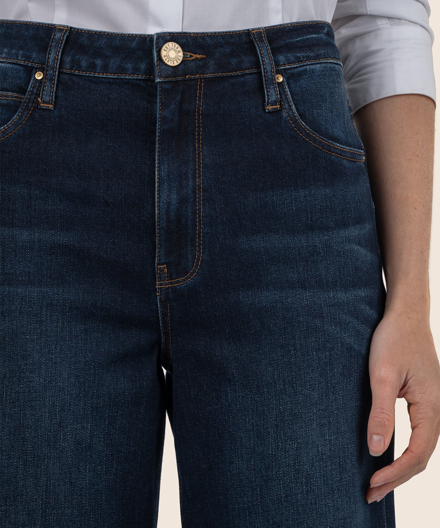 - The beloved combo of high waist and wide legs plus a touch of stretch are exactly why these dark-rinsed jeans are destined for favorite status.