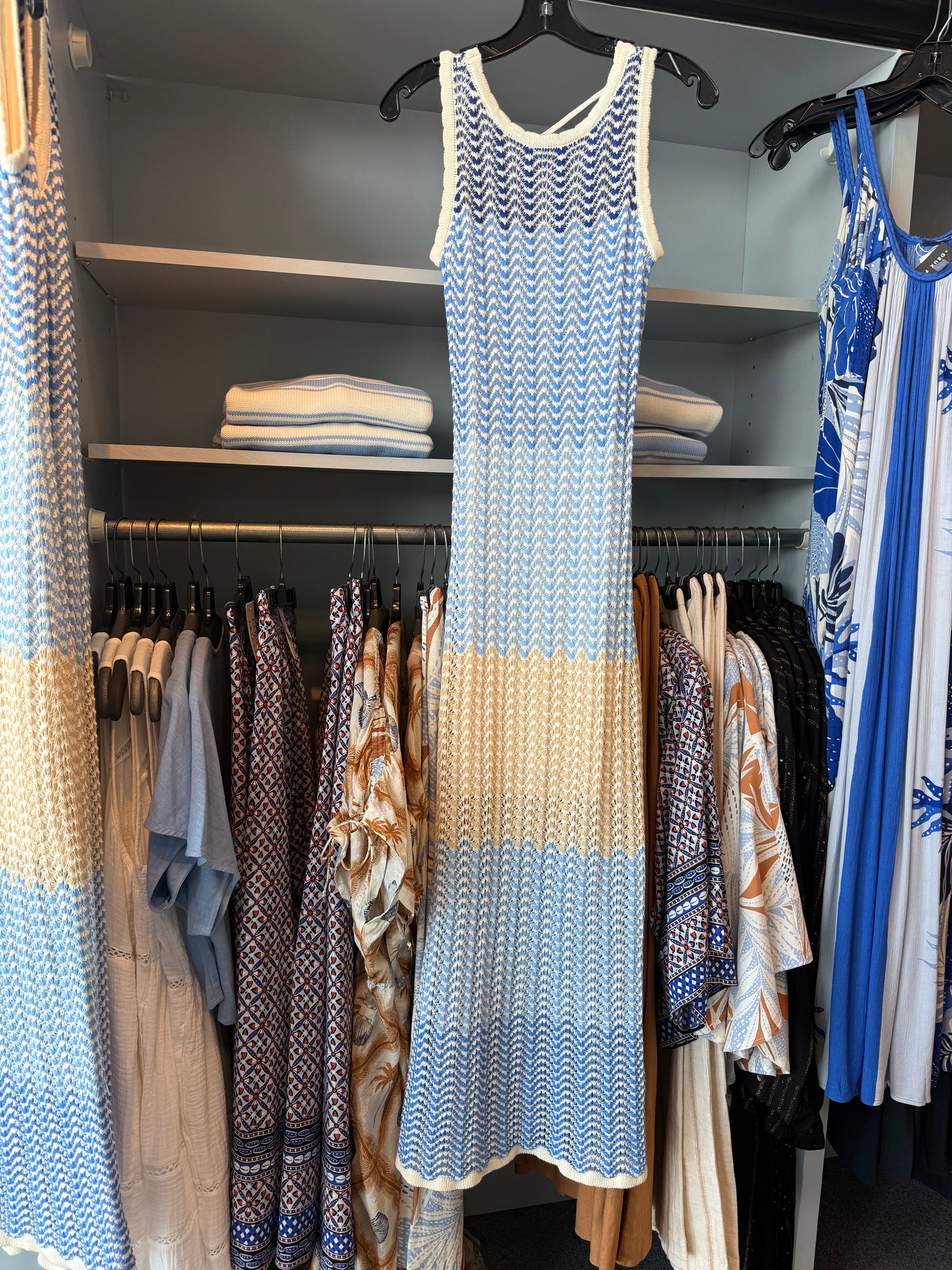 Lined crochet maxi dress. Cotton overlay ontop of the lining. Flattering tank coverage up top. Scallop detail at trim with a tassel tie in the back. True to size