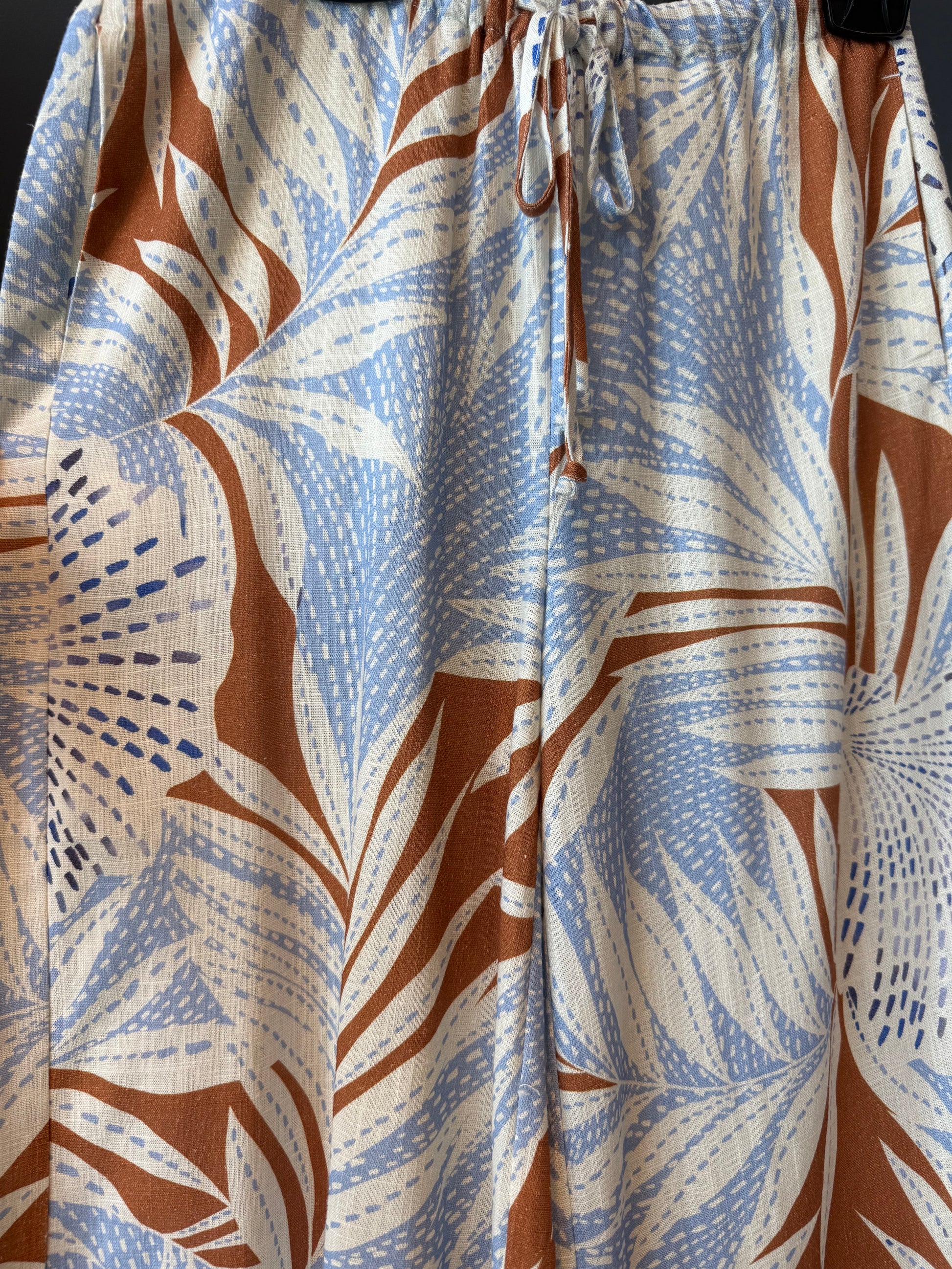 Drawstring wide pant in a breathable linen blend. High waisted in a full length. Pair these back to the Carolina’s Drawstring Top in colour BLUE for a coordinated look. True to size.