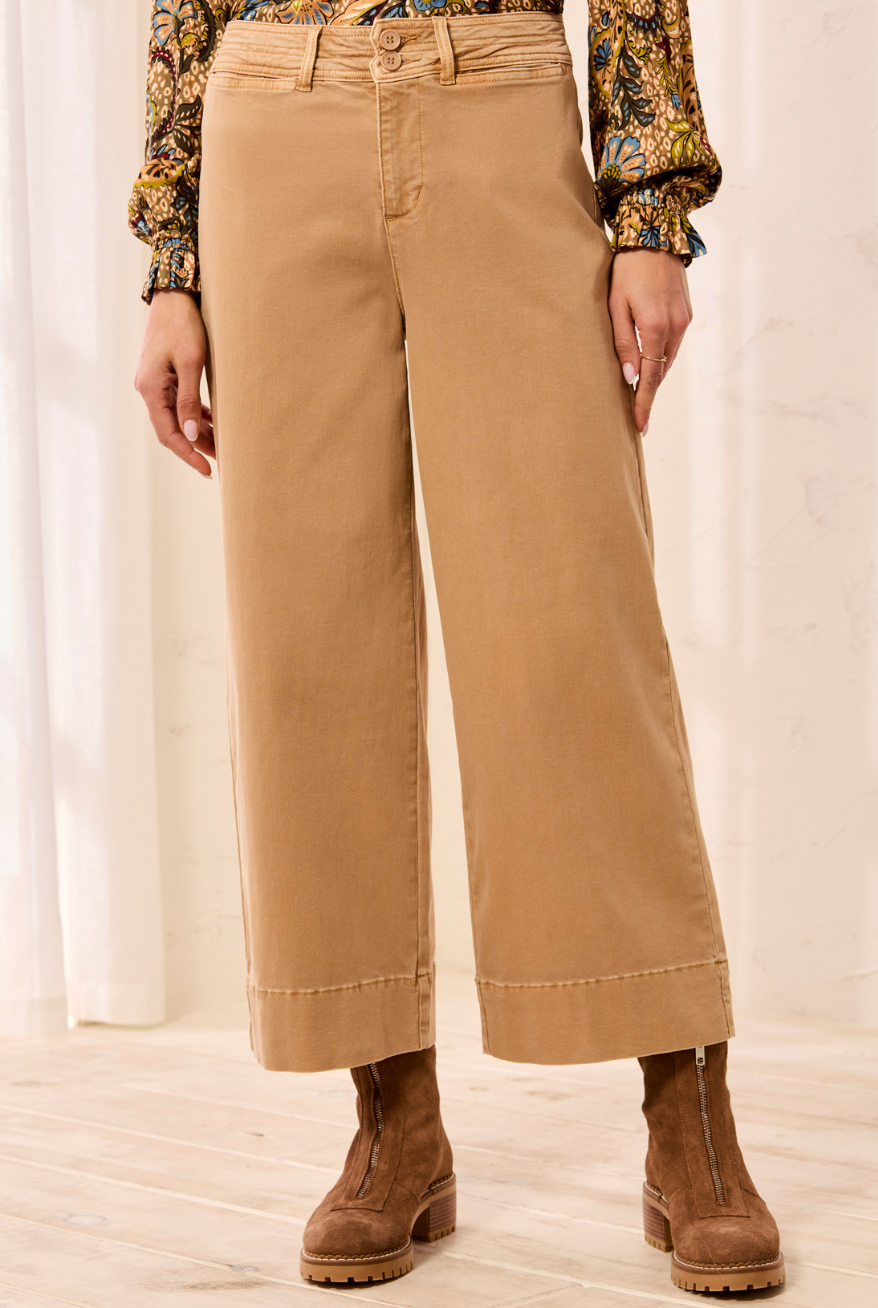 Made in a beautiful neutral colour that makes them easy to dress up or down. A perfect alternative for jeans. Featuring a cute double button detail a wide fit and a finished hem.