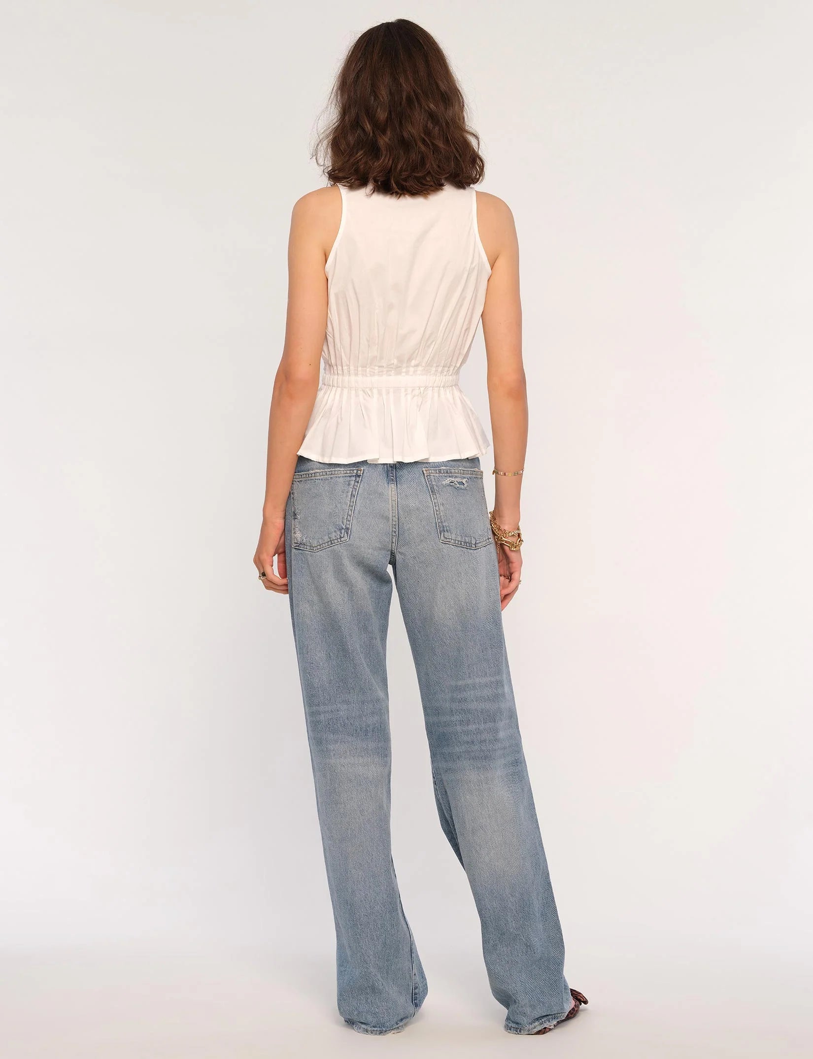 The Arco Top is a modern update to the classic button down. Made from a crisp poplin, it features a darted waist that cinches you in for a super flattering look.
