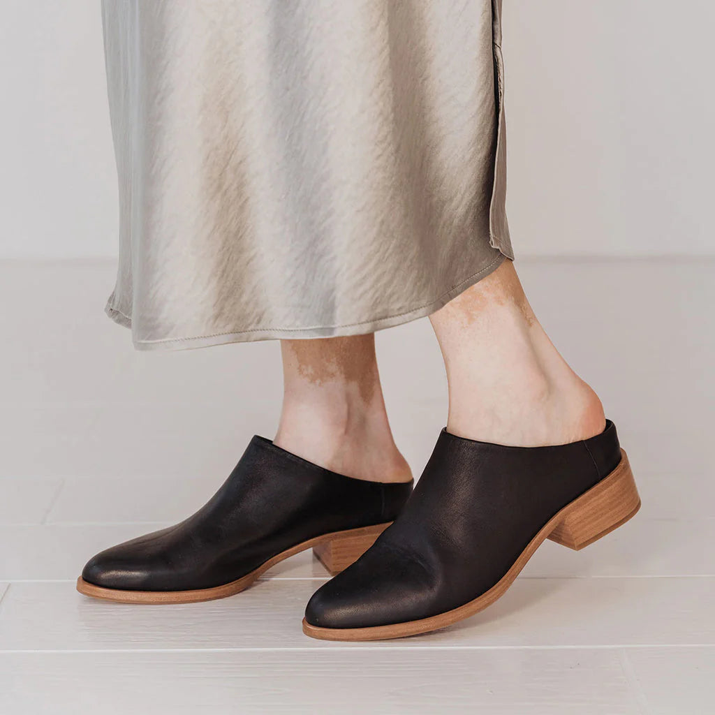 Effortlessly cool slip-ons you'll wear everywhere. Inspired by their best-selling Heeled Mules, made with a slightly lower heel. Every step is cushioned with memory foam insoles and soft leather lining.